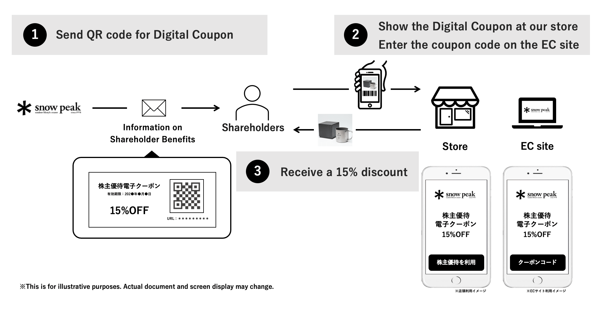 Shareholders can use these vouchers (Digital Coupon) to receive a 15% discount on the sales price of the Company's products, etc.